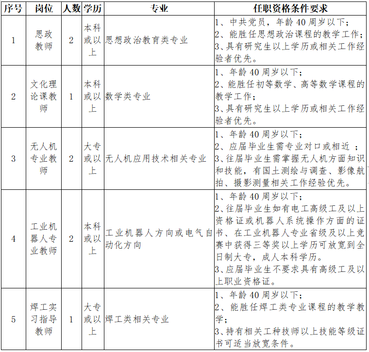 具体岗位任职资格条件要求详见《清远市技师学院招聘职位表》。