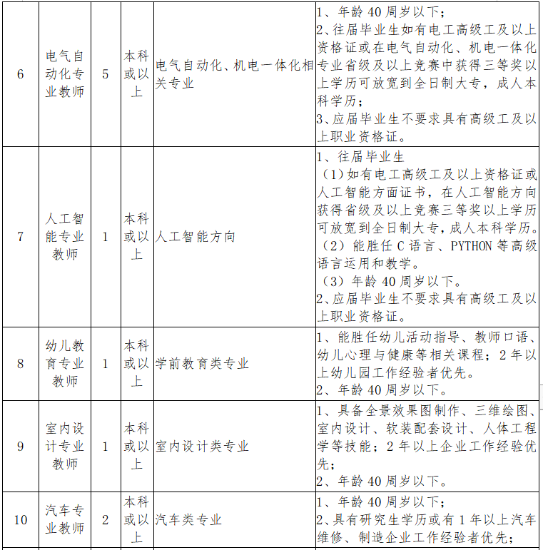 1.思想政治素质好,热爱职业教育事业,具有较强的事业心和责任心,具有良好的职业操守。