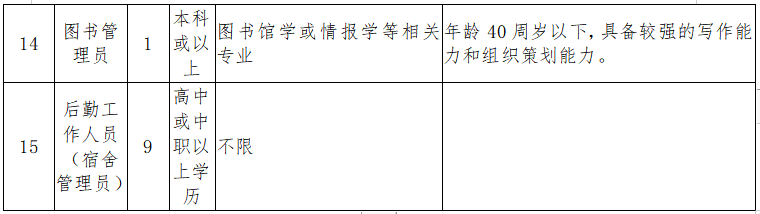 本次招聘岗位15个,共32人,其中教师系列专业技术岗位22个,非教师系列专业技术岗位1个,后勤工作岗位9个。